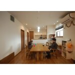小さなお子様がいてもママも安心なよう、対面キッチンのご提案をいたしました。 また、ダイニングにカウンターを設けることで、お子様は宿題が、ご主人様がお仕事が、同じ空間でできるようになりました。