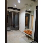 浴室水廻りはご主人様こだわりの空間。ホテルをイメージして、白を基調に、建具をオーダーで製作して高級感を出しました。床もタイルとカーペットを組み合わせ、高級ホテルを作り出しました。脱衣室は見た目が良いだけではなく、洗濯物と物干しなどの動線も考慮し、また、日々のお手入れも簡単になっています。