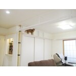 4匹の猫と子犬とお住まいの賑やかなお宅。猫ちゃんたちがのびのびと動き回れるような仕掛けをあちこちに仕掛けました。ペットドアや、高いところへの上り下りする階段、お部屋の真ん中にキャットウォークも。つり橋通路の真ん中は透明アクリル板で猫の可愛い肉球も見れます。