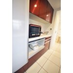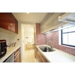 皆が集まるスペースの見直しを徹底しました。クローゼット部分にキッチンを移動してダイニングスペースを確保。お子様の部屋として4.5帖の部屋を残してあとは大きな一部屋としてリビングダイニングに。片付かない悩みを解消するためにキッチンとリビング両方に扉のついた収納を追加。隠す収納を用意することでスッキリ見えるようにしました。広く見通しのよくなったリビングはお手入れの楽な明るい色のフローリングでまとめ、大きなラグとクッションで思い思いにくつろげるスタイルとしました。壁には上質な雰囲気をもたらすタイルをアレンジ。間接照明を配置し、ホテルライクな印象を演出しました。