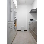 リフォーム後のカップボード。吊戸も増やし、収納量は前以上に。家電もたくさん収納できました。冷蔵庫までの壁を最大限使えるように、数㎝単位でプランさせていただきました。 扉色はキッチン全体のイメージを考え、キッチンの吊戸色に合わせてホワイトに。重くない雰囲気にしました。