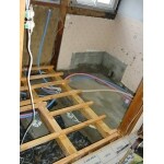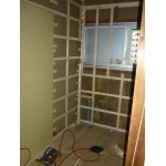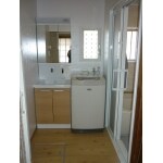 洗面化粧台でお化粧ができるよう、ミラーを正面に設置しました。そのために、リモデルウィンドウで窓を小さくしました。元の窓部分は、断熱パネル入りFIX窓なので、壁で覆ってしまい、ミラーが設置できるようにしました。 暗くなってしまわないよう白いクロス、LED照明の昼白色を選択し、窓が小さくなった分を補っています。 以前、台所や廊下など床を上貼りした際、床下収納庫を無くしてしまったため、今後のメンテナンスを考え、洗面所に床下点検口を設けました。