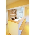 お客様のご要望に合わせた特注のカップボードを制作設置しました。キッチンは木目調を採用し、吊戸棚は撤去、オープンで明るくやさしい雰囲気のキッチンになりました。 安全性とメンテナンス面を考慮し、IHクッキングヒーターを採用しています。