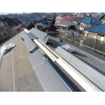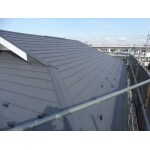 御客様の御要望は、当初は、瓦屋根の補修でしたが、地震等、総合的に考え、色つきのガルバリュームを提案しました。既存の瓦ともあまり違和感がないように色を選択しました。