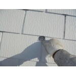 道路面からも屋根の状態がはっきりと分かる屋根の向きでした。 遮熱塗料を選択され、色は新築時よりも明るく、かといって下からも見えるのでホワイト系ではなく、茶系の中で明るい色をオススメさせていただきました。