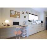 現在、入り口の近く部屋が使用されていないので将来は主寝室に出来る様にしつつも、当面はリビングと繋がる広いLDKとして使用できる空間をご提案しつつ、ご主人の趣味であるロードサイクルをオブジェとして飾れる部屋とすることでご希望されていた盗難からの心配を無くすことと保管場所の空間の有効活用をしました。 また、キッチンからパウダールーム、洗濯などの家事動線を出来る限り効率良く出来るように工夫をしました。