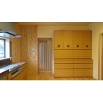 お孫様が学校から帰って一番に来るのがこの部屋です。おばあ様やお母様が立つキッチンの横で、宿題をしたり、遊んだり…。おじい様とおばあ様が、新しい住まいでの生活を具体的に想像しながら、キッチンやテーブルの配置をお考えになられました。私共は、精いっぱい明るくて、使いやすくて、居心地の良い部屋となるよう、施工させて頂きました。