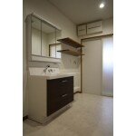 間取り変更をし、大きい洗面所にする事ができました。また小棚を新設することで、普段の家事するのに便利です。また洗面台もワイドを大きくし、また引き出しにすることで、収納力をアップするご提案をさせていただきました。