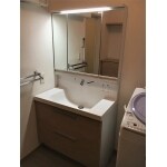 お客様に「たくさん収納ができて、すっきりと快適な洗面室になりました。」と喜んでいただきました。