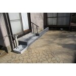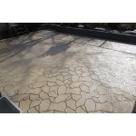 モルタル打設後にタイルや石を貼るのではなく、ステンシルコンクリートに模様をつけることで石を貼ったようなおしゃれな雰囲気に、安く仕上げました。