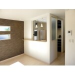 カウンター以外を壁で囲まれている場合に暗くなりがちなキッチンスペースを明るく仕上げました。外からの光を取り込むため、手ごろな大きさの窓を2連で設置し、飾りタイルをあしらいました。 また、室内側の壁にもFIX窓を設置。キッチンスペースとしてしっかり区切りながらも明るいキッチンとなりました。 最近はオープンスペースなキッチンが多いですが、独立型キッチンもニオイや煙、油がリビングへ飛ばない、急なお客様が来てもキッチン周りを気にしなくてよい、などたくさんのメリットがあります。