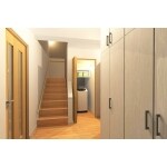 高さと幅を確保した玄関収納をご提案。圧迫感のない白い面材。鏡面仕上げで光を反射し、より明るく感じます。