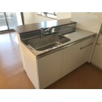 扉は鏡面仕上げ、取っ手はシャープなアルミ取手にし、キッチン横のタイルはパネルに変えた事でお手入れしやすくいつまでも綺麗にお使いいただけるキッチンになりました。