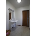 動線の改良をして使いやすい洗面へ変更しました。将来に備えて引き戸にしたり、車いす対応の洗面台を採用いただきました。