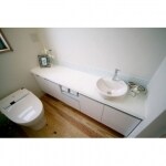 設備機器をホワイト系の色にして明るさを出し、手洗いのカウンターは広くきれいに見せるクリスタルカウンターを使用しました。