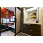 ・ニッチと列柱と付梁アクセント ・自由な色組み合わせ使いの、UBとキッチン。 ・個性的なクロス。 ・廊下スペースの有効利用。(ユーティリティー・洗濯機置場) ・ユーズド感のあるヴィンテージテイスト