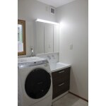 洗面化粧台は、ゆったりとして作業のしやすい陶器ボウルで、大きなバケツはしっかり置けるほか、ボウル周辺の水はねを抑えるので、セーターなどのかさばる衣類の手洗いや、洗髪などもしっかり行えます。