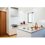 身長が153センチの施主様のお一人暮らしは、背の高い食器棚、吊戸棚は不要だと感じた。それらを撤去し、大きいシステムキッチンに必要な生活用品のみを収納するよう提案をいたしました。 リビングの人と会話をしながら料理が出来るように、セパレートキッチンをご提案いたしました。