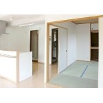 和室とキッチンと一体化されたリビング。 キッチンで作業をしながらも家中を見渡すことが可能になりました。