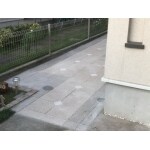 エスビック社のインターロッキング商品によるポーチを紹介しました。 方形でないイレギュラーの部分(例 雨水蓋)は、職人さんの技術で円形に加工してピッタリセットしてあります。