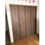 今回の工事の方法は 今ある引き戸の枠部分はそのまま残し、扉だけ撤去した後 残した枠部分の内側に新しい枠を取り付け そこに折れ戸をはめ込むというものでした。 工事完了後には枠が二重になります。 この工事の方法ですと、今ある枠を外さないので 周りの壁紙を傷つけることがなく工事ができます。 また、新しい枠を取り付けたり折れ戸をはめ込むだけなので 工事中、お部屋が汚れてしまうことも大きな音が出ることもありません。