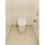 ウォークインクローゼットと書斎だったスペースに、新たに浴室・トイレ・洗面室を設けました。またトイレの新設にともない、既存雑排水用ポンプを汚水兼用ポンプに交換する工事を行いました。 トイレはネオレストAH1を設置、腰壁あたりまでは掃除がしやすいようにパネルを貼りました。 床にはLIXILの「クロノストーン キングポリス 400角」タイルを施工しました。 白とベージュを基調とした明るくシンプルで洗練されたトイレ空間です。