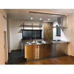 サンワカンパニーのオールステンレスキッチンは御支給頂きました。合わせてカップボードはご要望の元、いちからデザインしてオリジナルで造作をしました。