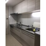 古くなってきたキッチン、換気扇を一新し、吊戸とキッチンの間はお掃除のしやすいキッチンパネルに変更。同時に汚れが目立っていた床のクッションフロアの取替と壁のクロスを張替て、キッチン全体を明るい空間になるようにご提案させていただきました。