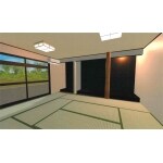 現在は8畳間ですが、広縁を撤去し2畳分プラスして10畳間にしましょう。 壁紙は正面に濃い目のアクセントを入れ、シックでモダンな空間にしましょう。 床の間は背面壁の裏に空間を設けテレビの配線が通るようにしましょう。