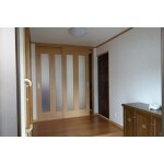 開口部をドアから引戸に取替をして、フロアーの張替をしました。