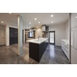 リビングを広げ、中心にキッチンを配置しました。 対面式にしたことで、リビングで寛ぐご家族と会話を楽しみながら料理が出来ます。 今回設置したキッチンはパナソニックの最上級グレード「Lクラス」です。 全体のモダンなイメージに合わせて、扉カラーはマットな質感の【ヴィンテージメタル】をご提案しました。