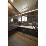「組石グレー」のパネルを全面に貼り、浴槽のエプロン部分をブラックにすることで、モダンで高級感のある浴室に生まれ変わりました。 また、スパージュならではの機能の【肩湯】を取り入れています。肩湯は、首から肩に優しい湯をまとうよな新感覚です。全身浴でも半身浴でもリラックスできる入浴時間が楽しめます。
