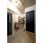 お施主様のご趣味の良いインテリアや緑がとてもよく映えるインダストリアルな空間を提案。 躯体剥き出しの天井に無垢フローリング。足場板の古材やアイアンの金具で作った造作家具などこだわりが詰まったお家です。