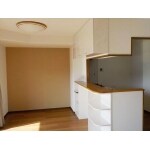 洋室と同様、傷みが目立っていたフローリングはフロアタイルに張り替えました。 壁や天井のクロスも一新し、壁の一部にアクセントカラーを使い落ち着いた雰囲気となりました。 また、カウンターや木枠のキズ補修も行いました。