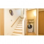 天井までの造作家具をご提案。たっぷり収納出来ますし、置き家具とは違い、家具裏・家具上にほこりが溜まりません。脱衣所は洗濯機の場所を階段下へ移動することで広々と快適な空間になりました。1階はお父様のお部屋の和室に合せ通路やLDKの床レベルを同じにしました。玄関ホールに手すりを設置し安全にも配慮しました。