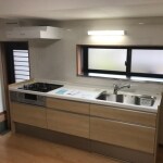 既存と同等のキッチンサイズをご提案。カップボードを置くスペースが無い為、家電ストッカ―をホームセンターなどで用意してもらうなどしながら、少しでもスペースの確保に努めました。