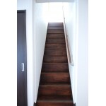 カバー工法で、床の素材と合わせたカラーにさせて頂きました。お手入れもしやすく、踏み面には滑り止めもついています。同じ色目の手摺も付けさせていただき、安全性もアップしました。