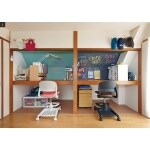 6畳の個室をシェアしているO様邸の仲良し兄妹。スペースを有効活用するため、2間の押入れを学習スペースにリフォームしました。襖は撤去し、棚板には天板を張って表面を滑らかに。ポイントは勾配天井にあしらった黒板壁紙です。チョークで絵を描いて楽しんだり、目標を書いて学習意欲を高めたり、使い方次第でお部屋の印象も変わります。