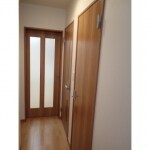 居住スペースと店舗の部分にあった段差。 床上げをしてフラットにし、バリアフリーにしました。 廊下が暗かったので、リビングの引き戸は明かりをとりこめるようなデザインの建具にしました。