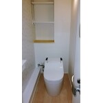 タンクレストイレと、収納棚を自由度高く使っていただけるものを造作。クロスや照明に遊び心を加え、ドアを含めた”プチかわいい”トイレ空間をご提案しました。