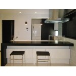 対面式キッチンに変更。カウンターとチェアをキッチンと対比色にすることでスタイリッシュなイメージで。