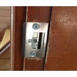 ドアに付いているドアノブと、ドア枠に付いているドアノブの受けがしっかり勘合しないことが原因の為、ドア枠の受け(ストライク)の交換をお勧めしました。