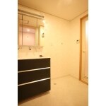 シンプルな色使いが多いため、短い時間しか過ごさない洗面脱衣空間では、色を積極的に用いて全体とのバランスをとりました。