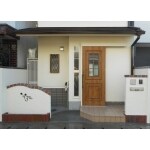 以前の玄関開口部はガラス面の大きな引違い戸であったことから、リフォーム後の明るさ確保のために、片引戸横に新たにガラス面を設けることになりました。 塀については、数パターンのデザイン案から、アイアン飾りのプランをご採用下さいました。