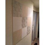 エコカラット(デザインパッケージ1㎡タイプ)を 玄関廊下に貼りました。エコカラットは、湿度調整や消臭機能もある自然素材の壁ですが、このようにデザイン性もあるため、玄関をおしゃれにする効果もあります。