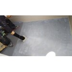 塗料ではひび割れなどの段差を隠すのは難しく、マンションなどによく使用する塩ビ製長尺シートをご提案いたしました。若干予算オーバーですが、長い目で見ると、メンテナンス費用としては安く済みます。