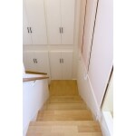 階段を絨毯からフローリングにしたい。また階段の収納も扉などを何とかしたい。