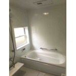 タイルの浴室からユニットバスへのリフォーム。 明るい水色のパネルで清潔感あふれる明るいバスルームになりました。