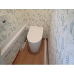 便器の交換と内装のリフォーム。 手洗い器も新設し、便利で快適なトイレに。