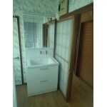 洗面脱衣室の内装のリフォーム。 洗面化粧台の入替を行いました。 明るくなりました。